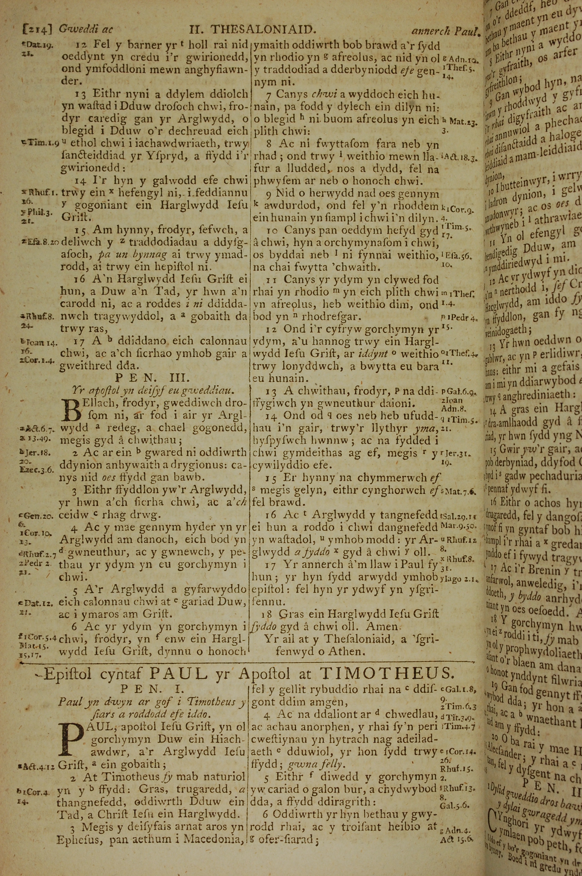 1796年威爾斯文新舊約全書 帖撒羅尼迦後書 2 章 12 節到 3 章 18 節
