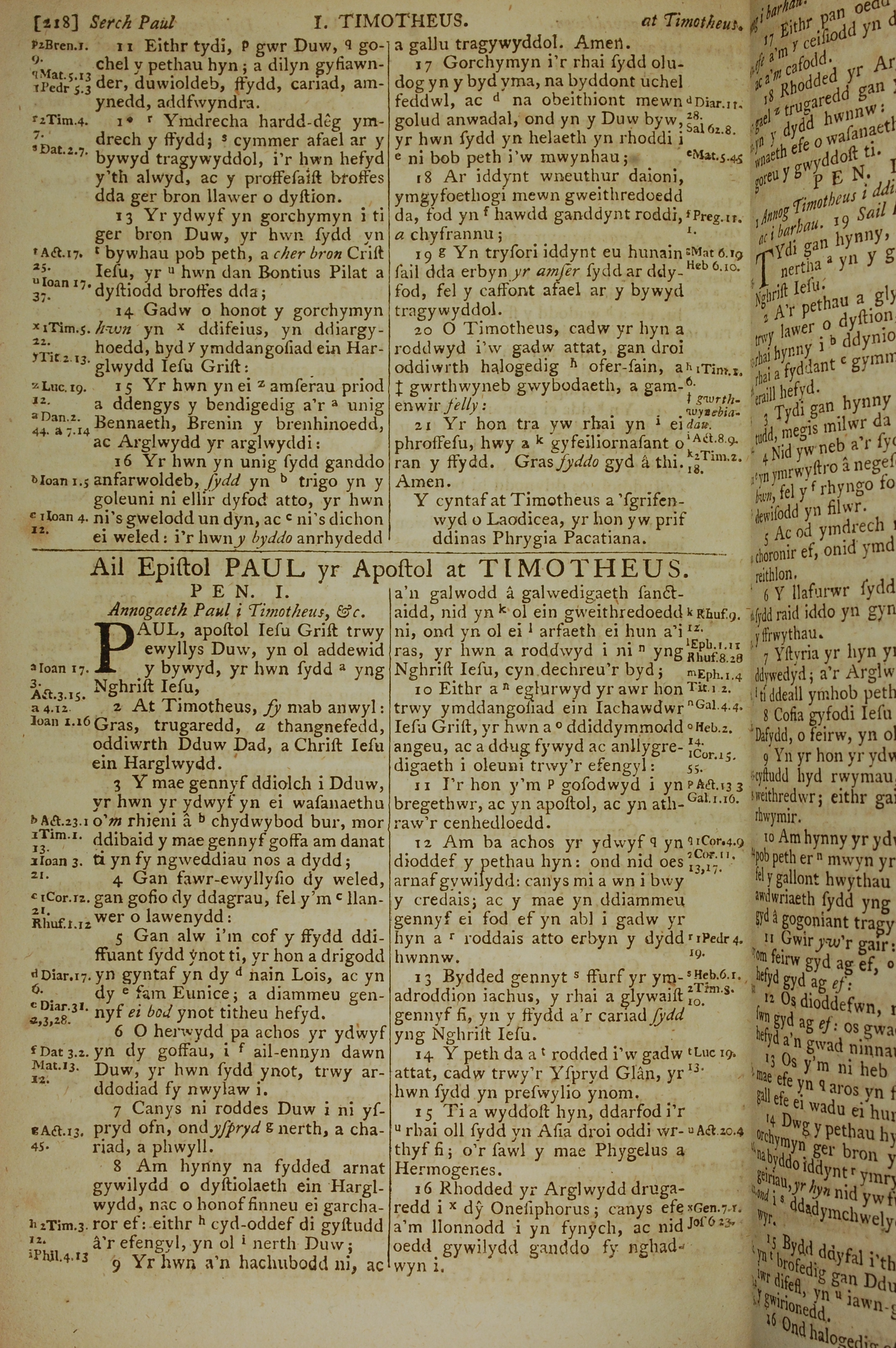 1796年威爾斯文新舊約全書 提摩太前書 6 章 11 節到 6 章 21 節
