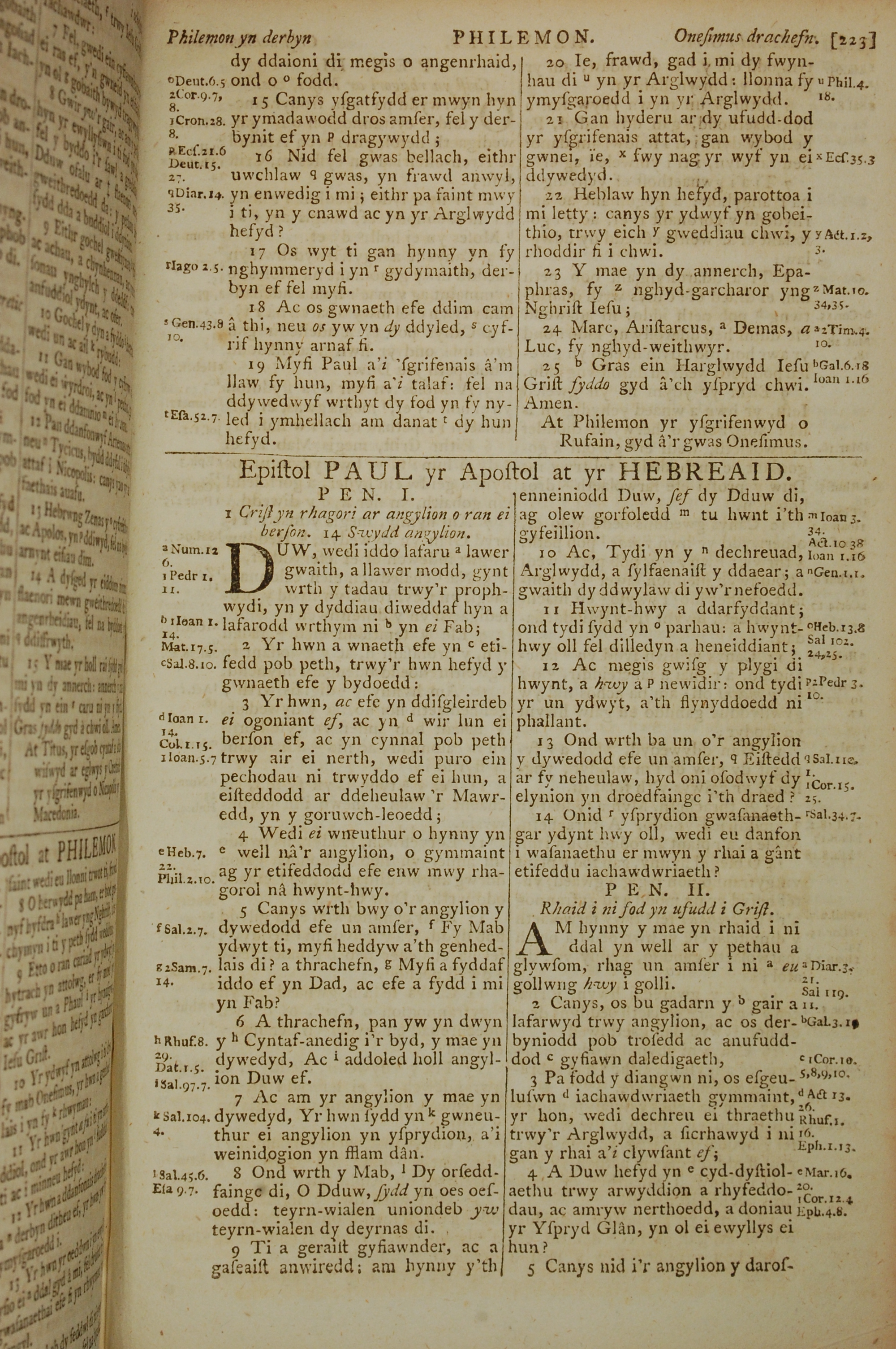 1796年威爾斯文新舊約全書 希伯來書 1 章 1 節到 2 章 5 節