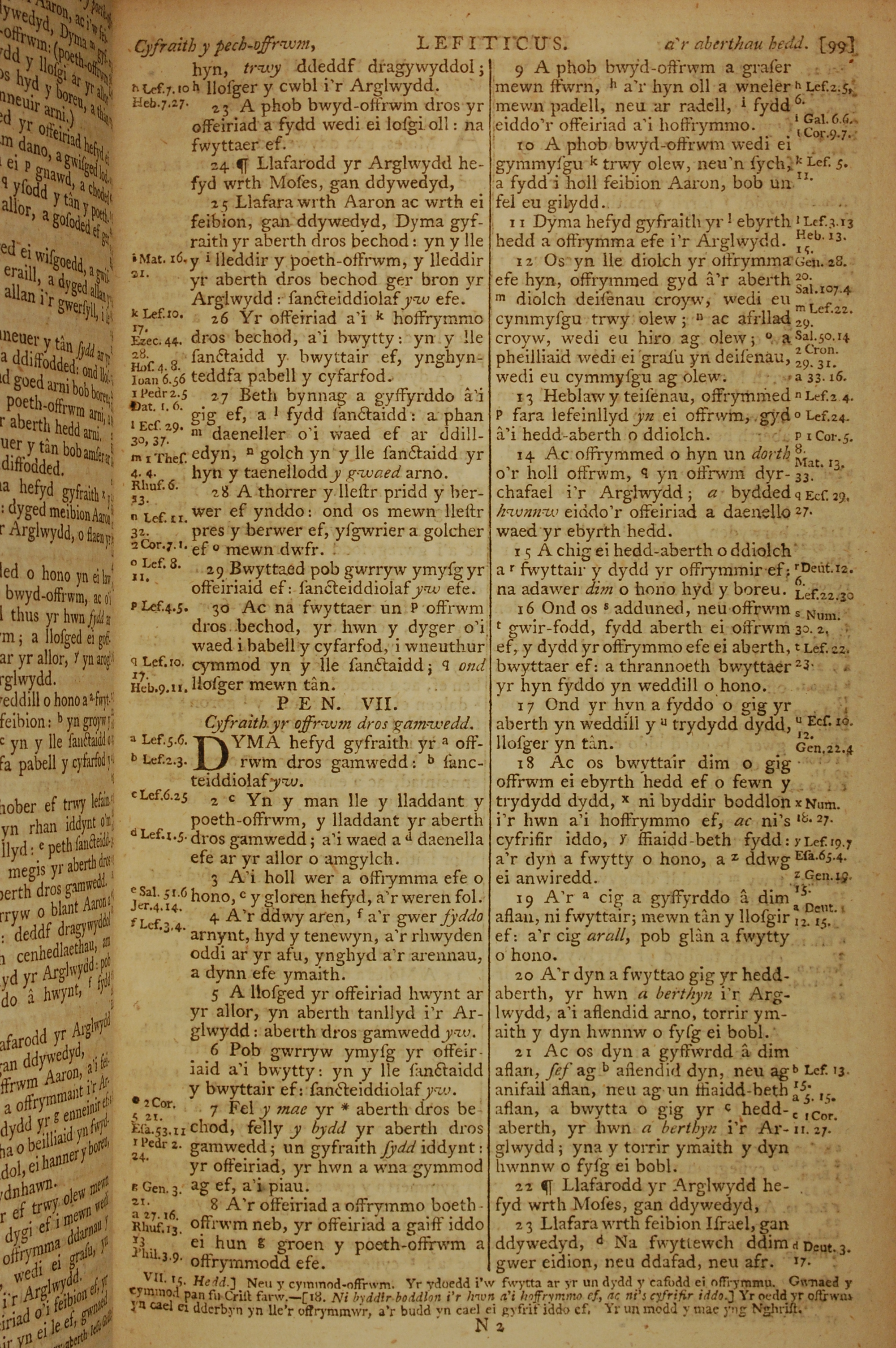 1796年威爾斯文新舊約全書 利未記 6 章 23 節到 7 章 23 節