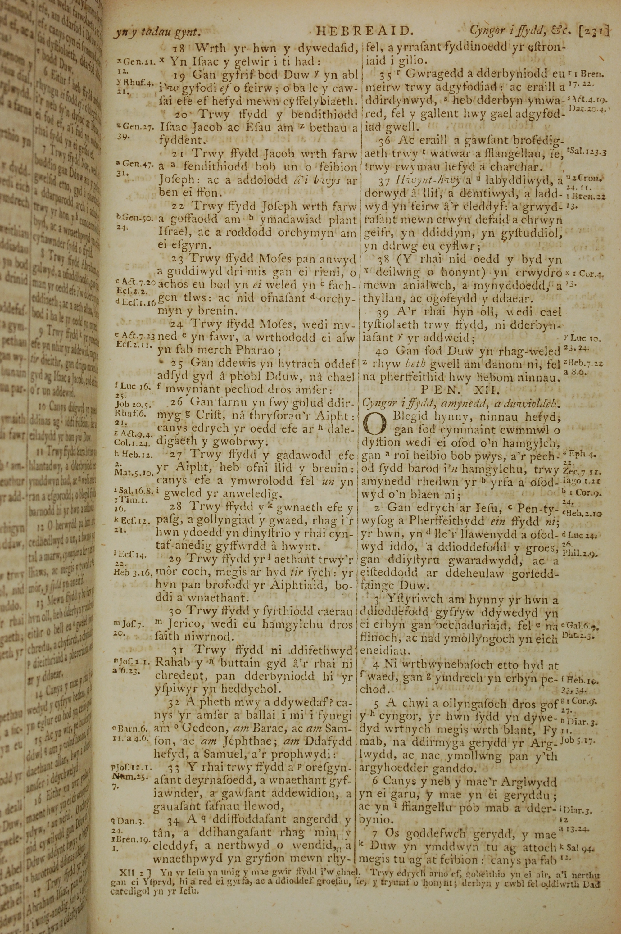 1796年威爾斯文新舊約全書 希伯來書 11 章 18 節到 12 章 7 節
