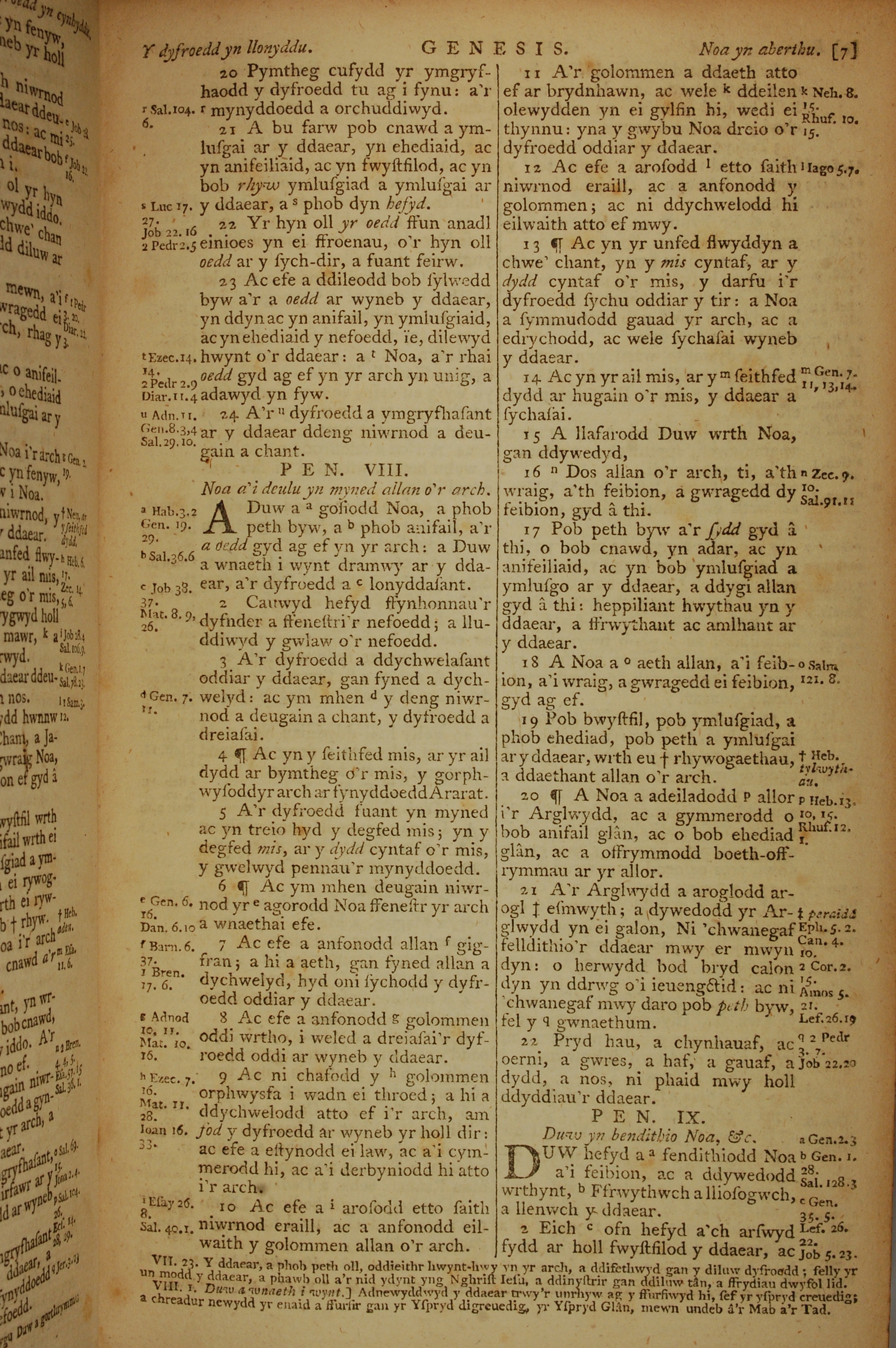 1796年威爾斯文新舊約全書 創世記 7 章 20 節到 9 章 2 節