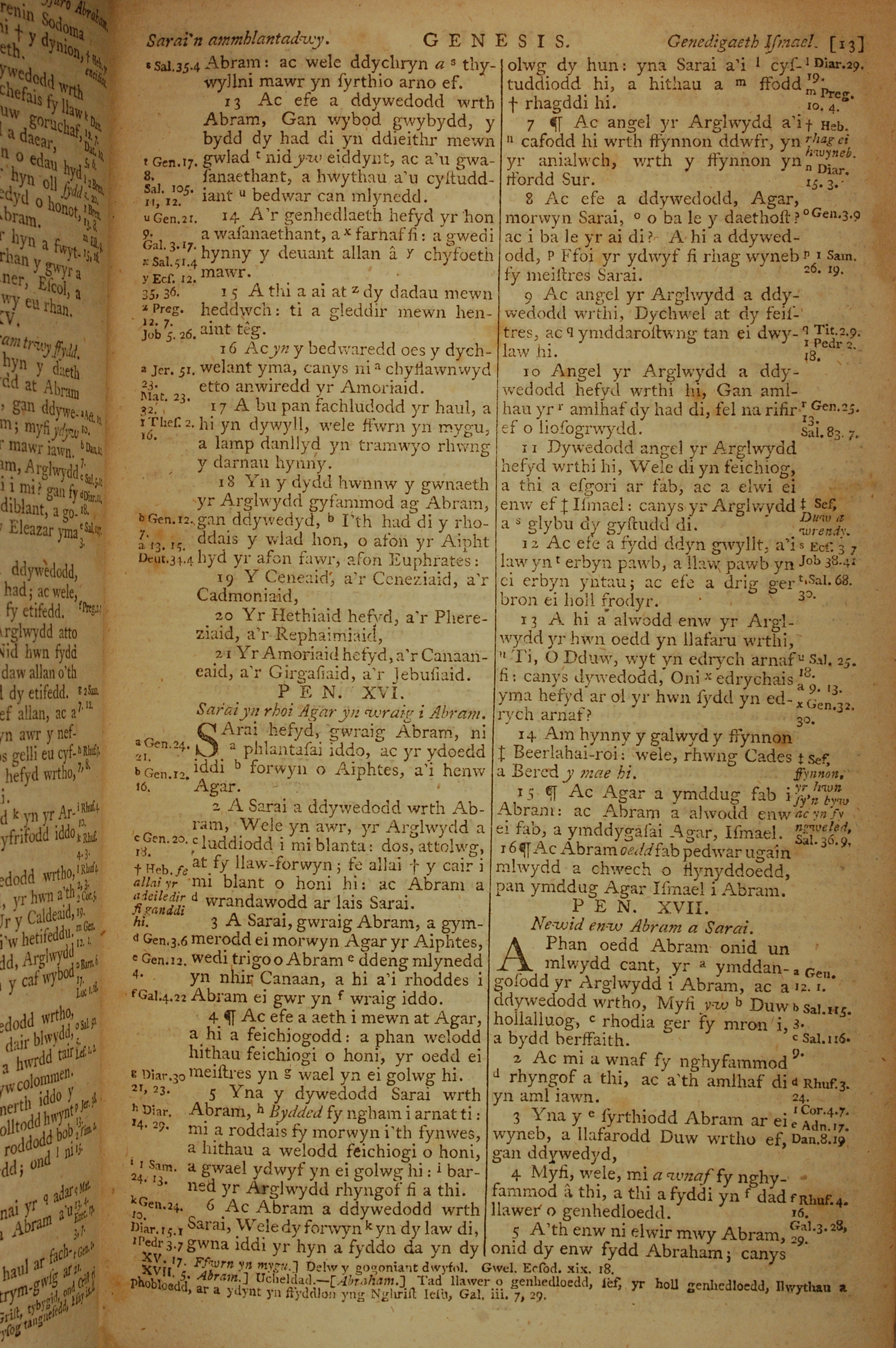 1796年威爾斯文新舊約全書 創世記 15 章 13 節到 17 章 5 節