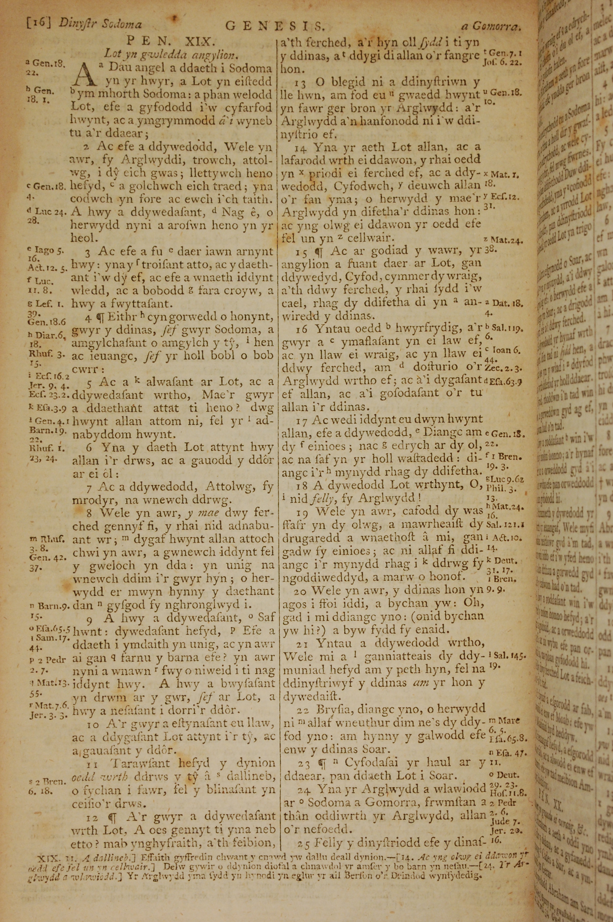 1796年威爾斯文新舊約全書 創世記 19 章 1 節到 19 章 25 節