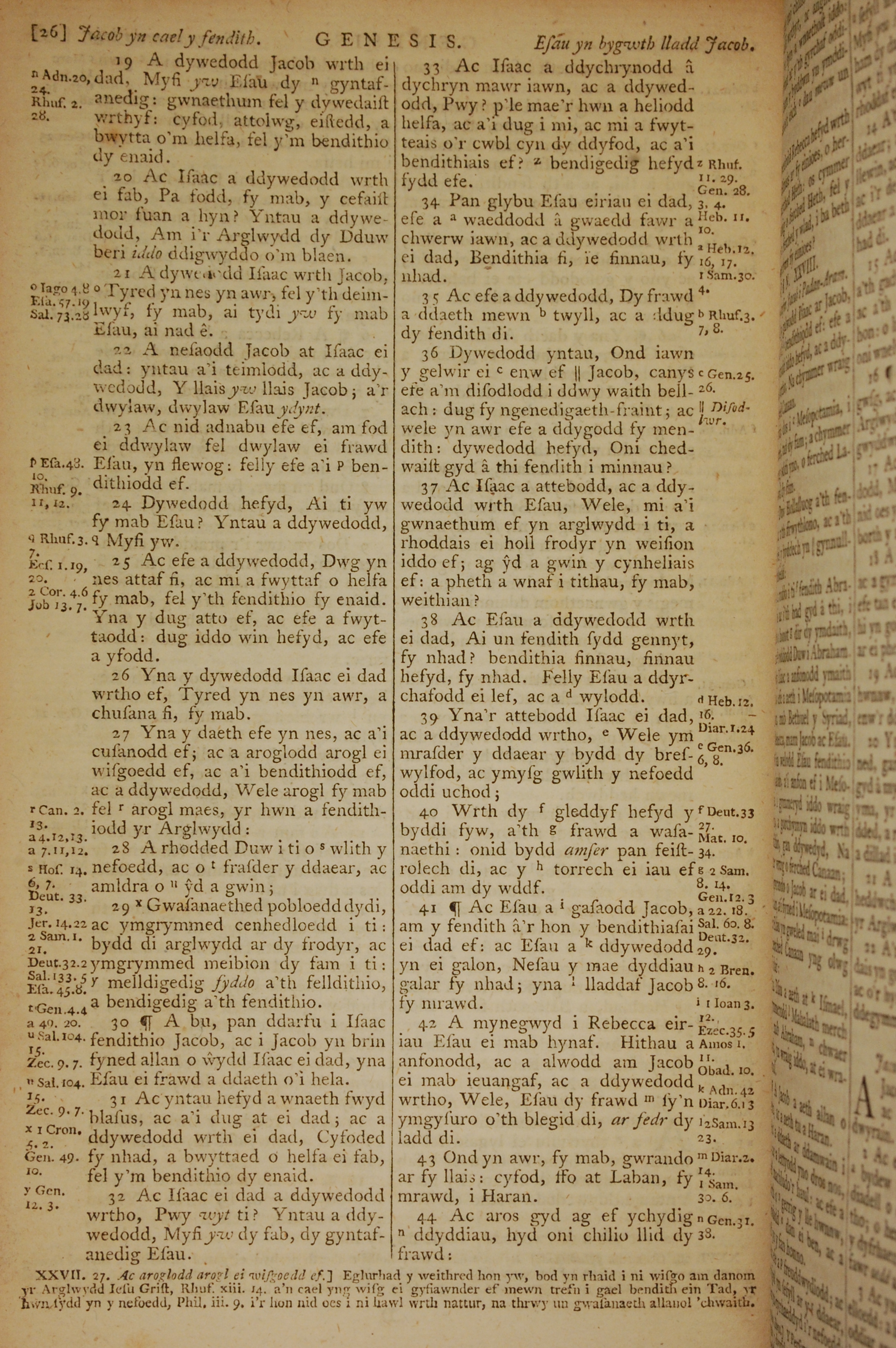 1796年威爾斯文新舊約全書 創世記 27 章 19 節到 27 章 44 節