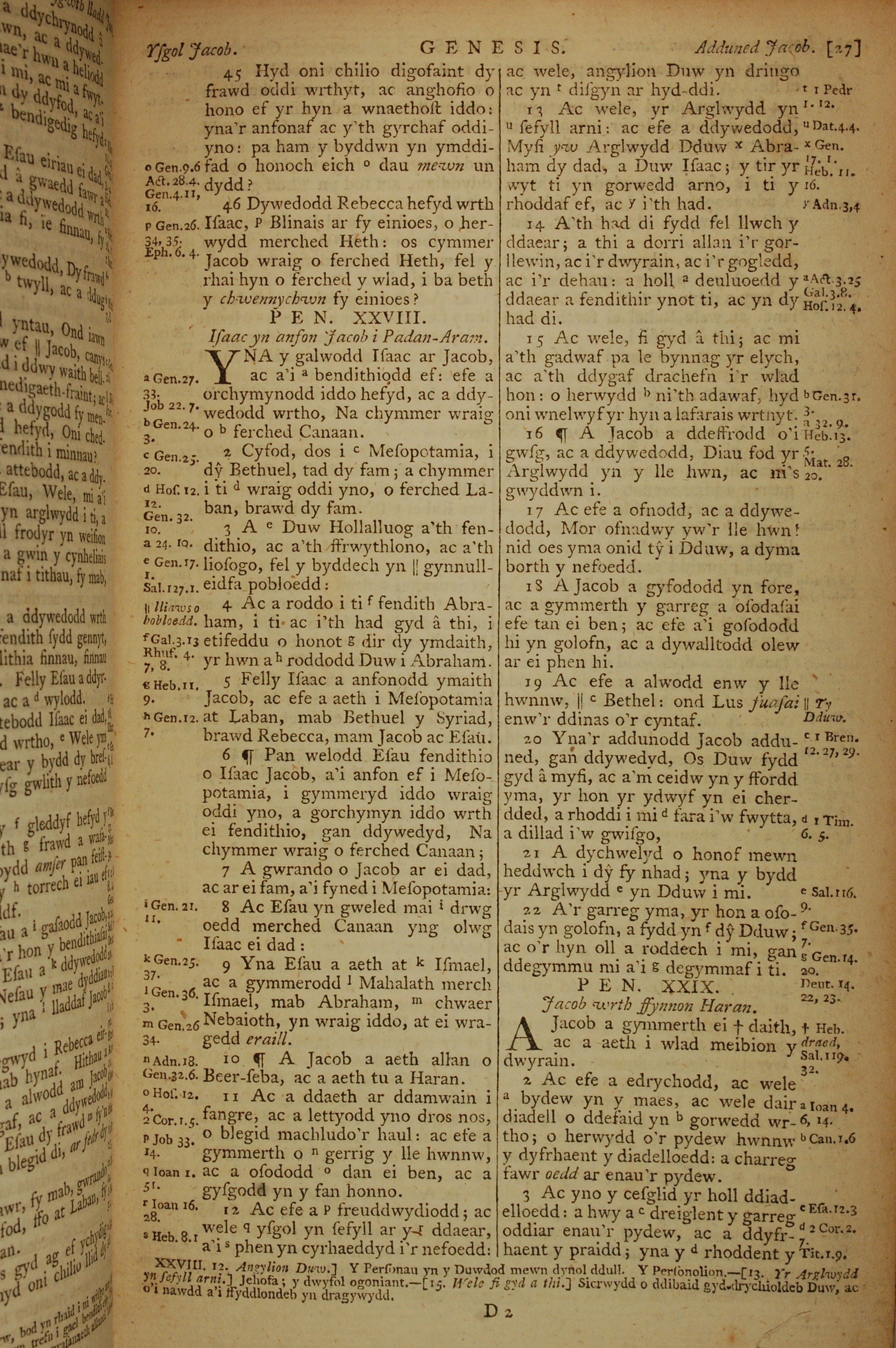 1796年威爾斯文新舊約全書 創世記 27 章 45 節到 29 章 3 節