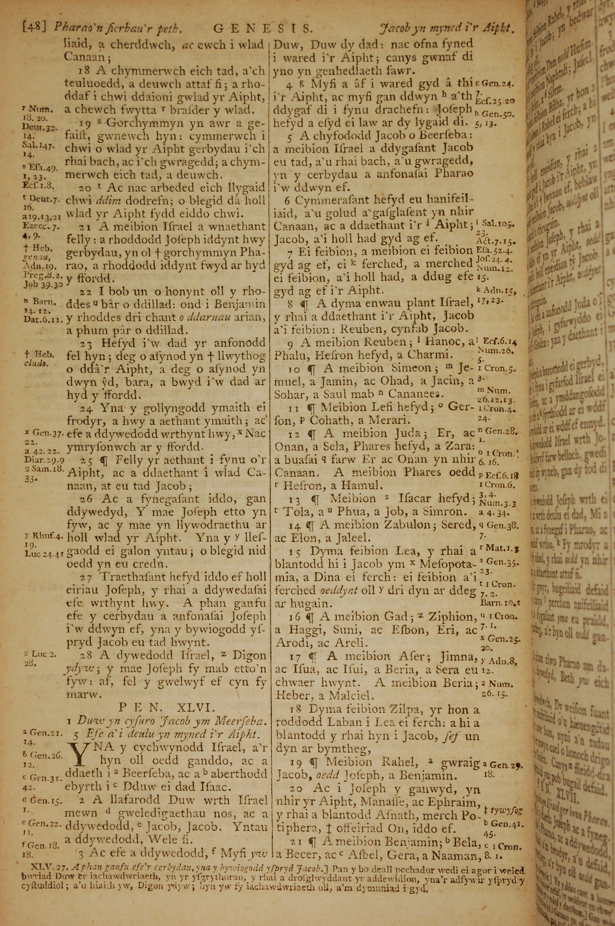1796年威爾斯文新舊約全書 創世記 45 章 18 節到 46 章 21 節