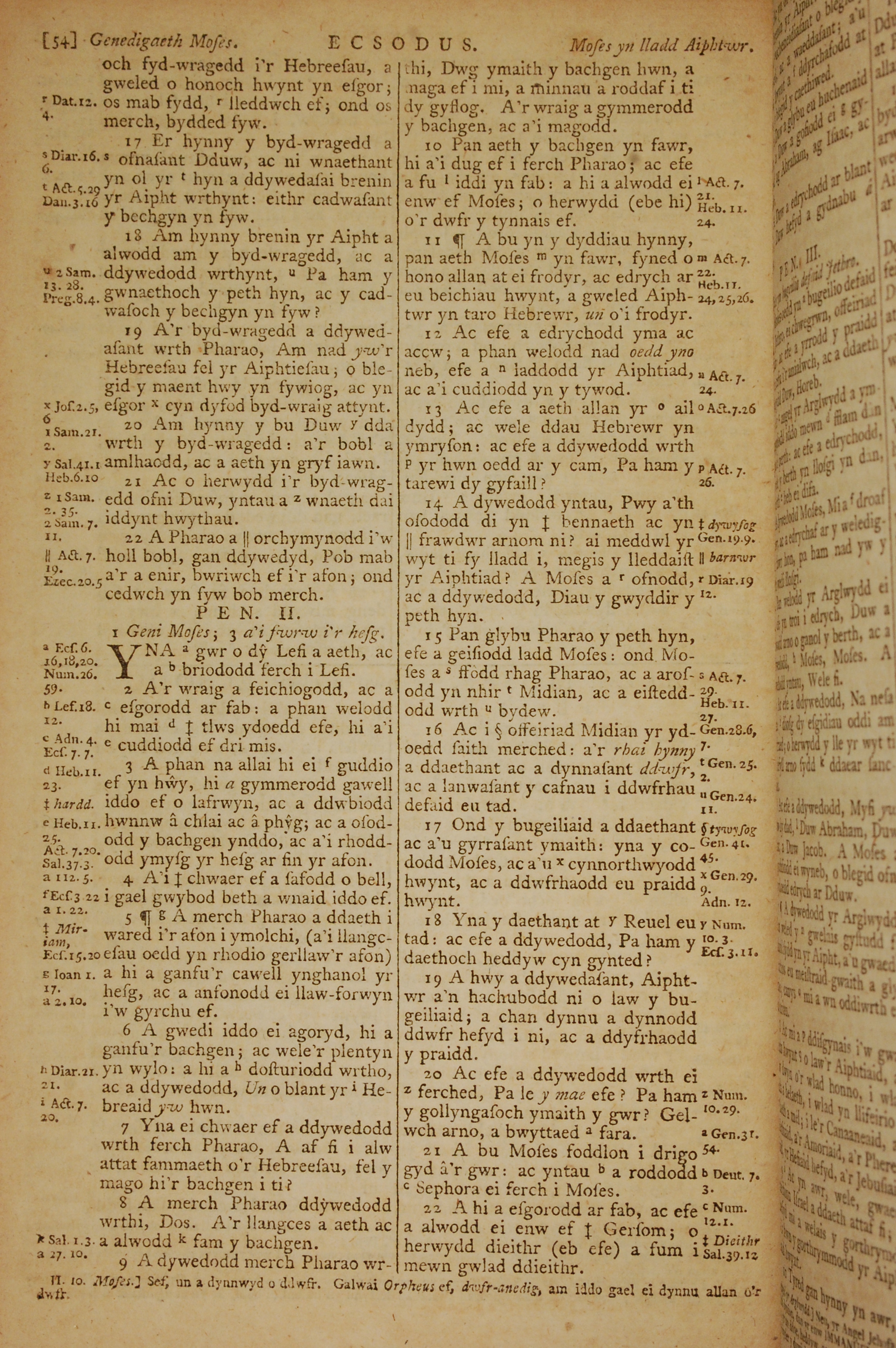 1796年威爾斯文新舊約全書 出埃及記 1 章 17 節到 2 章 22 節