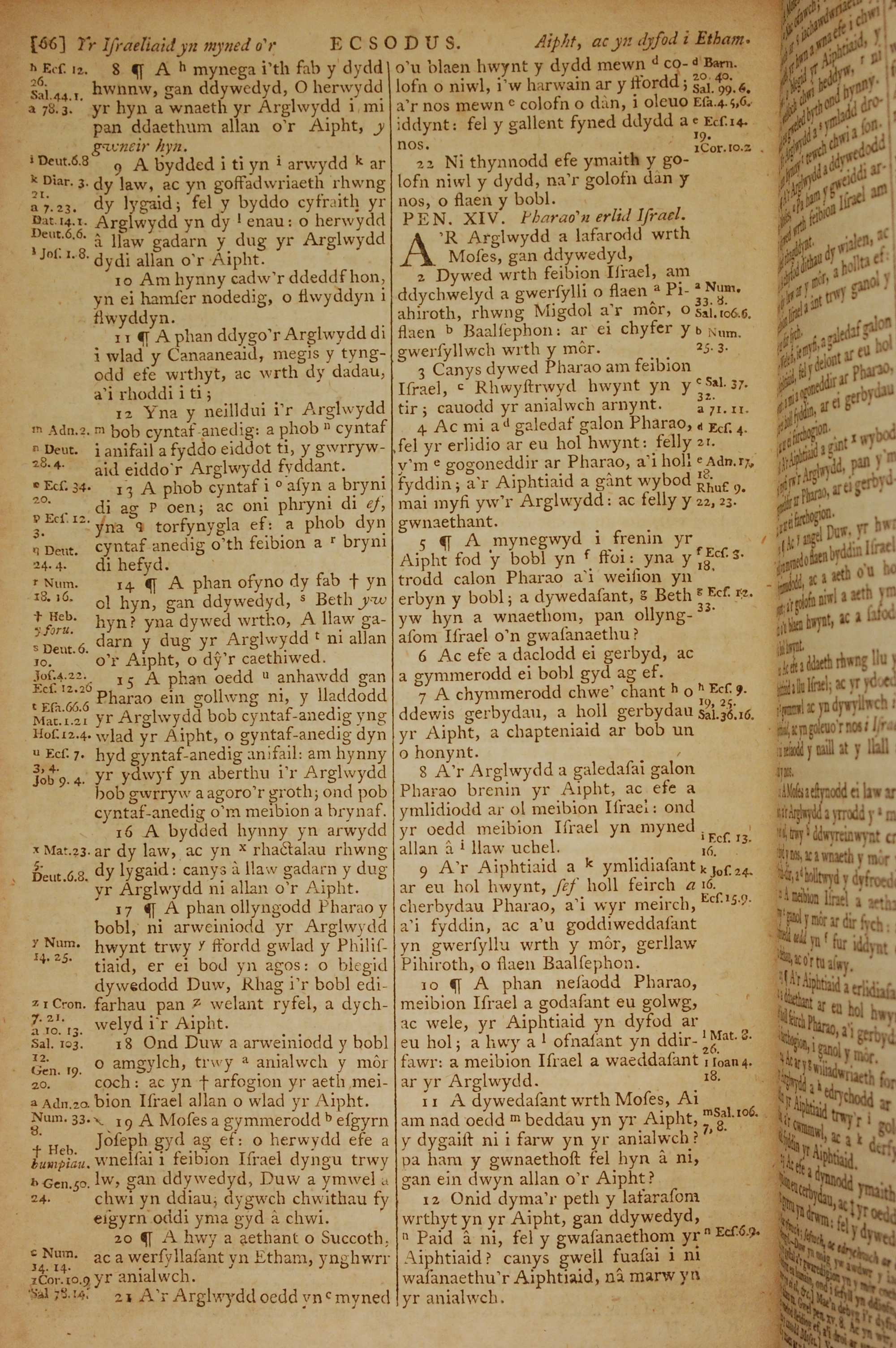 1796年威爾斯文新舊約全書 出埃及記 13 章 8 節到 14 章 12 節