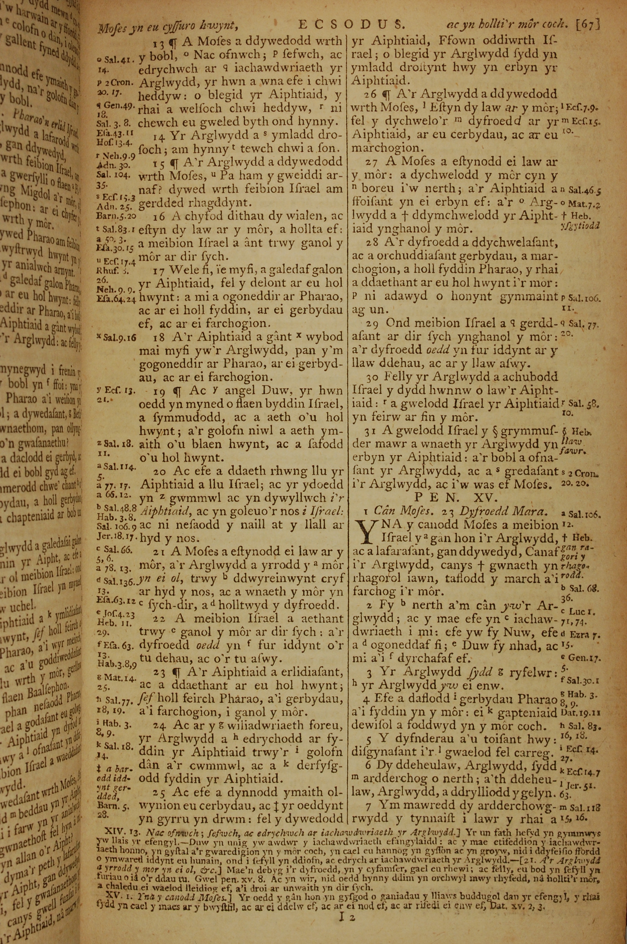 1796年威爾斯文新舊約全書 出埃及記 14 章 13 節到 15 章 7 節