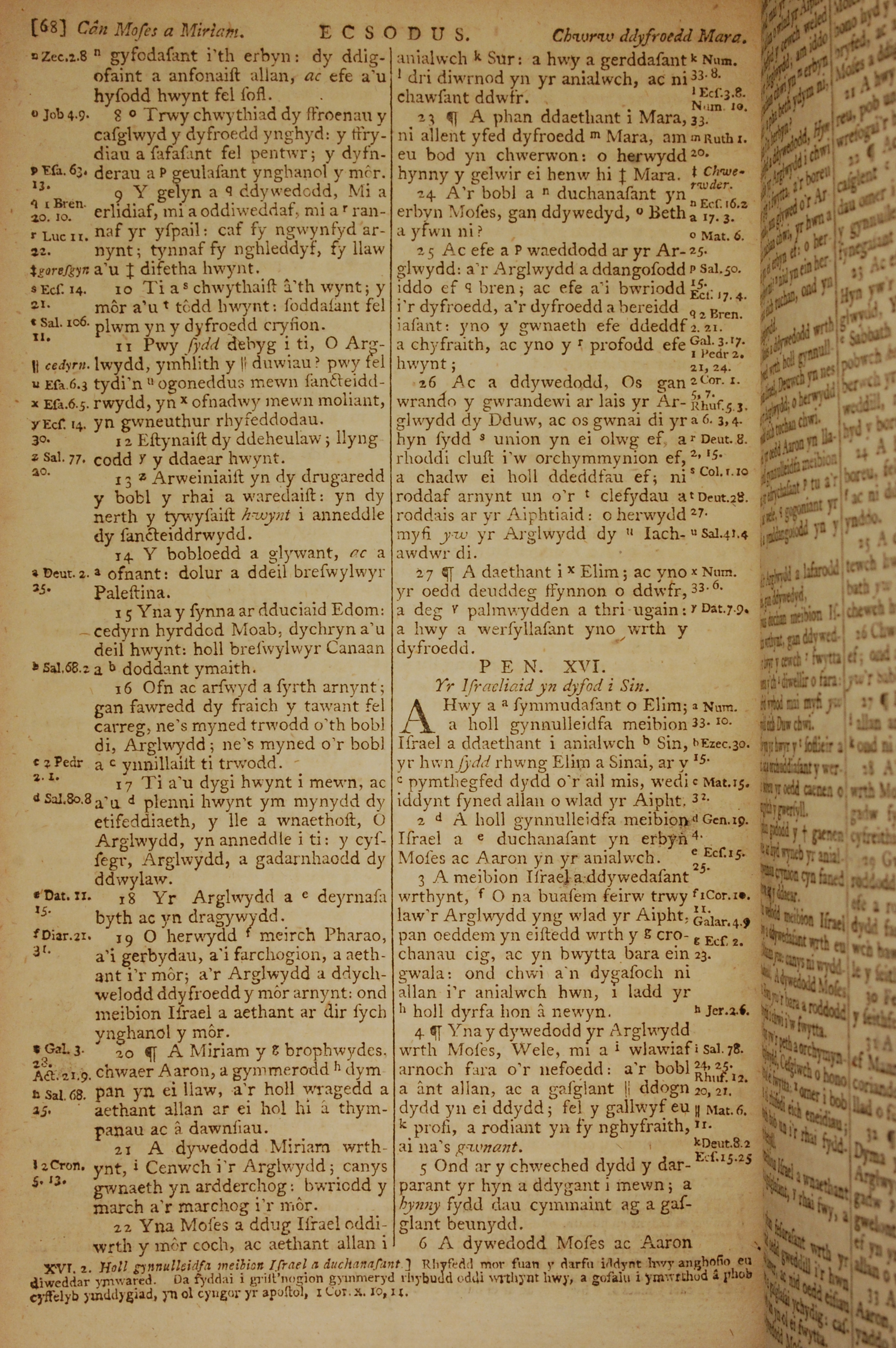 1796年威爾斯文新舊約全書 出埃及記 15 章 8 節到 16 章 6 節