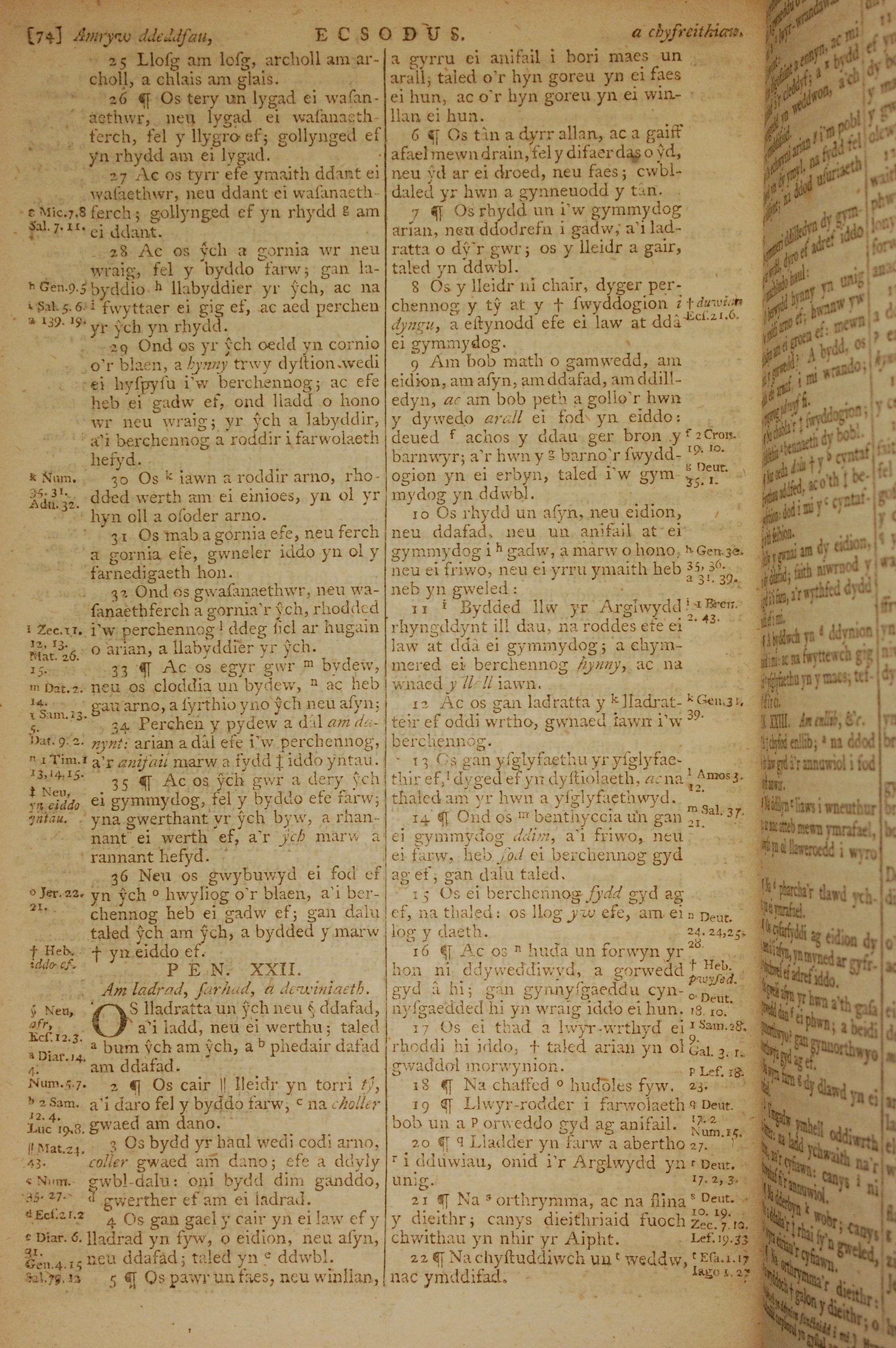 1796年威爾斯文新舊約全書 出埃及記 21 章 25 節到 22 章 22 節