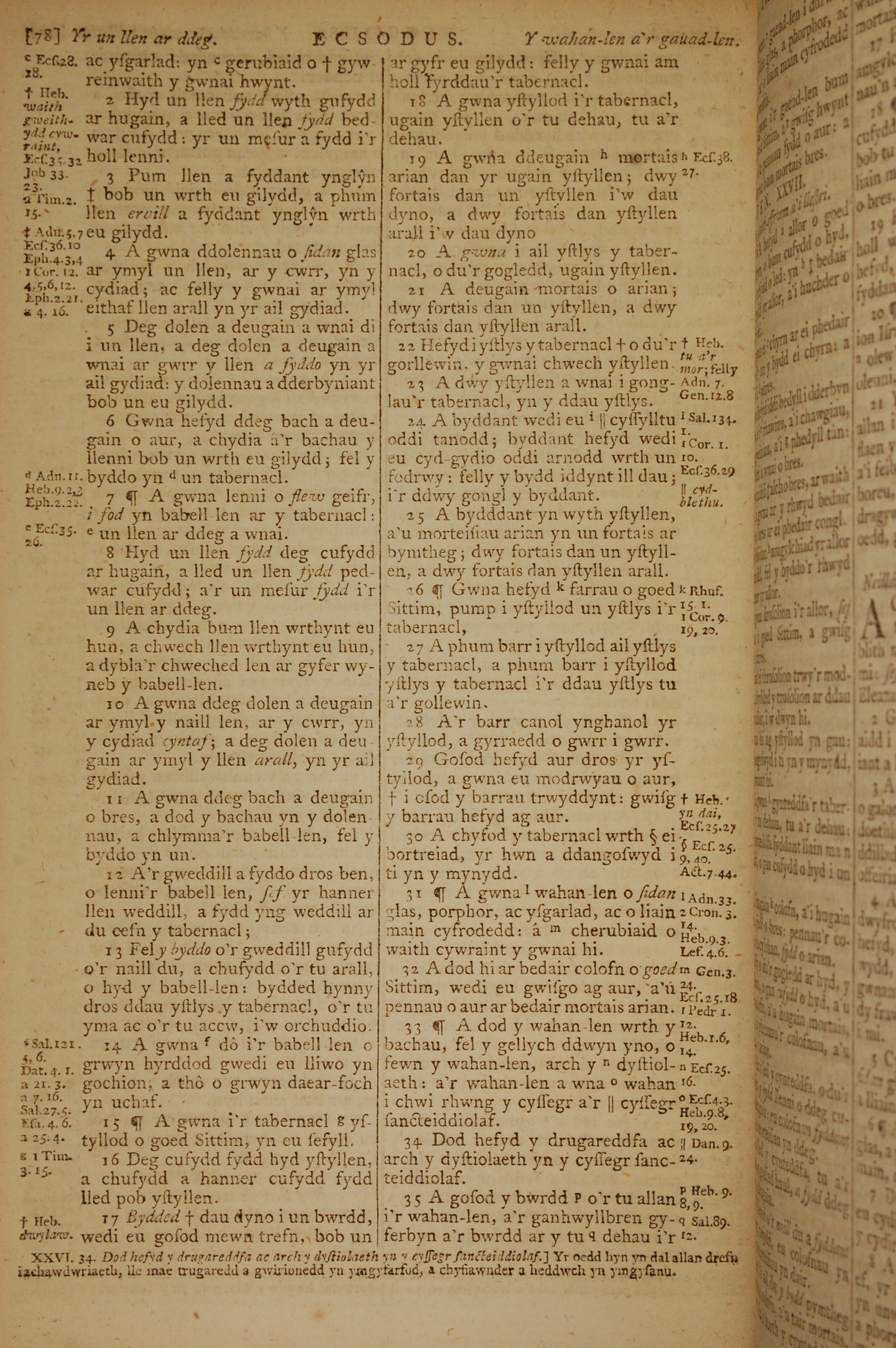 1796年威爾斯文新舊約全書 出埃及記 26 章 2 節到 26 章 35 節
