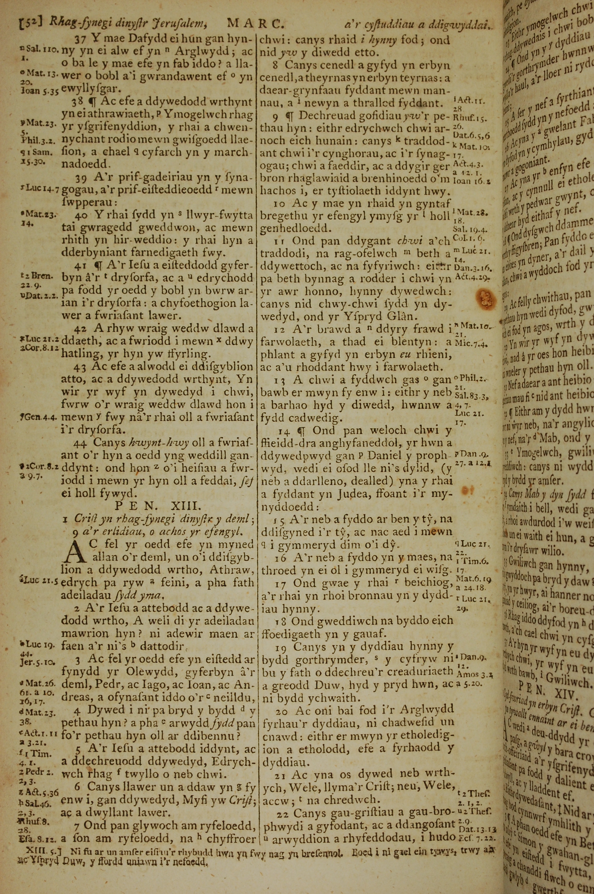 1796年威爾斯文新舊約全書 馬可福音 12 章 37 節到 13 章 22 節