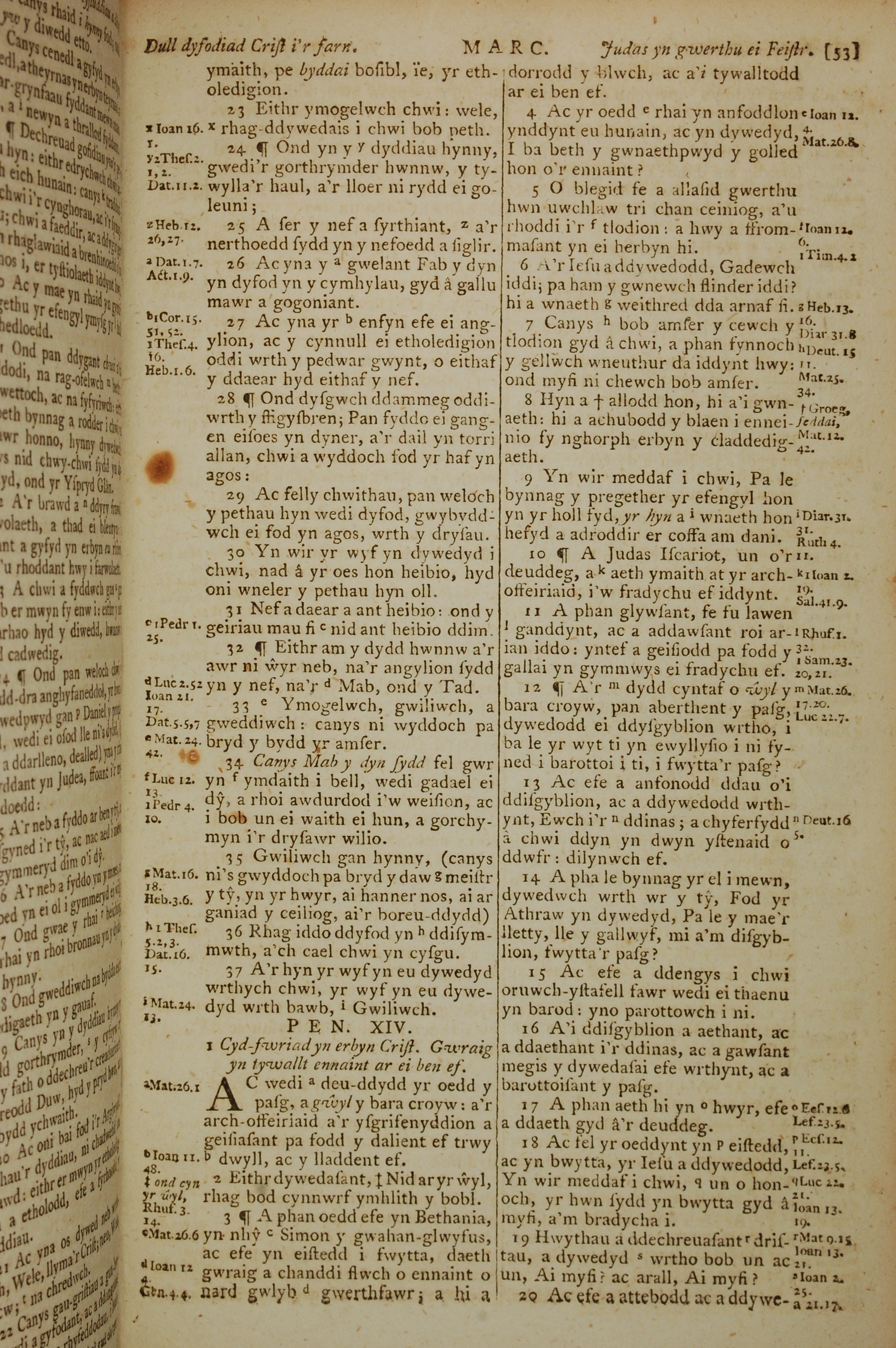 1796年威爾斯文新舊約全書 馬可福音 13 章 23 節到 14 章 20 節
