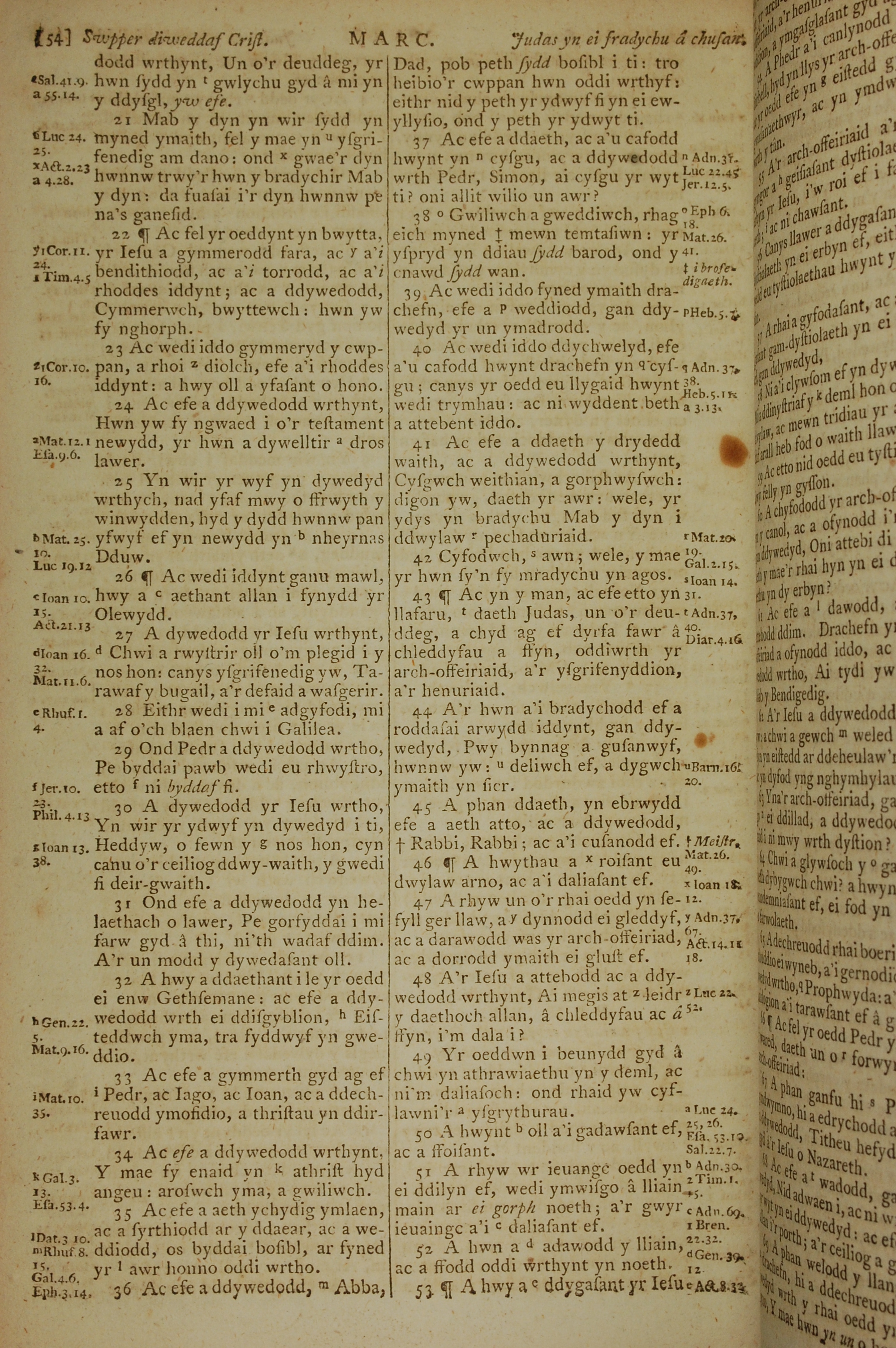 1796年威爾斯文新舊約全書 馬可福音 14 章 21 節到 14 章 53 節