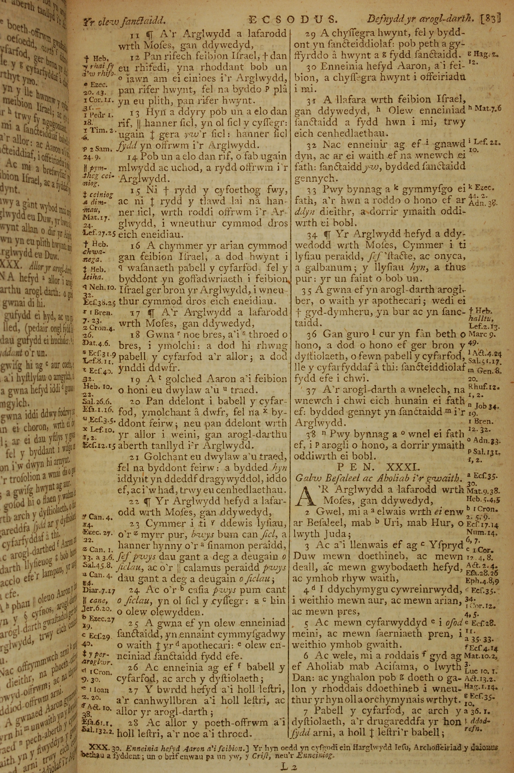 1796年威爾斯文新舊約全書 出埃及記 30 章 11 節到 31 章 7 節