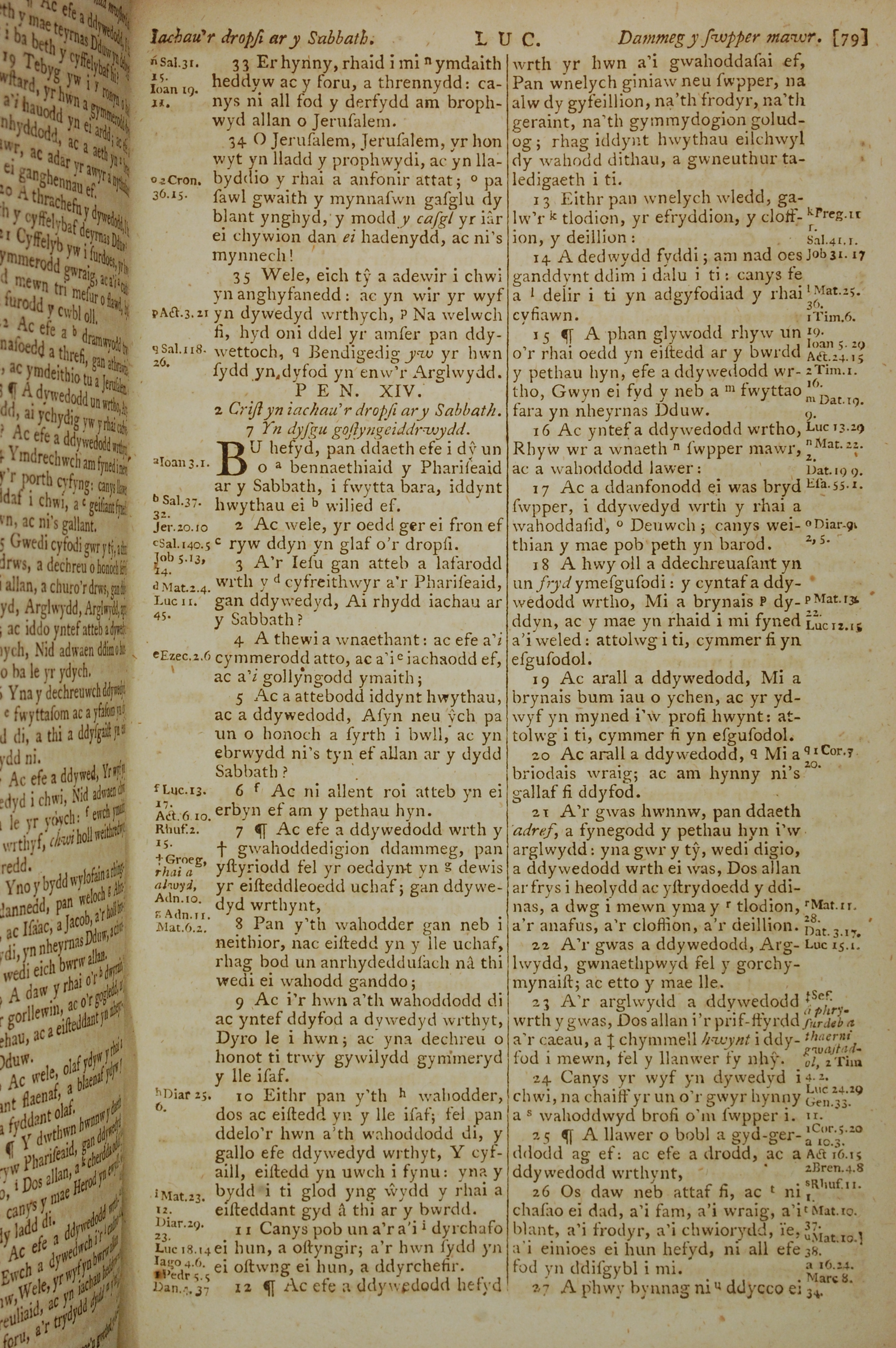 1796年威爾斯文新舊約全書 路加福音 13 章 33 節到 14 章 27 節