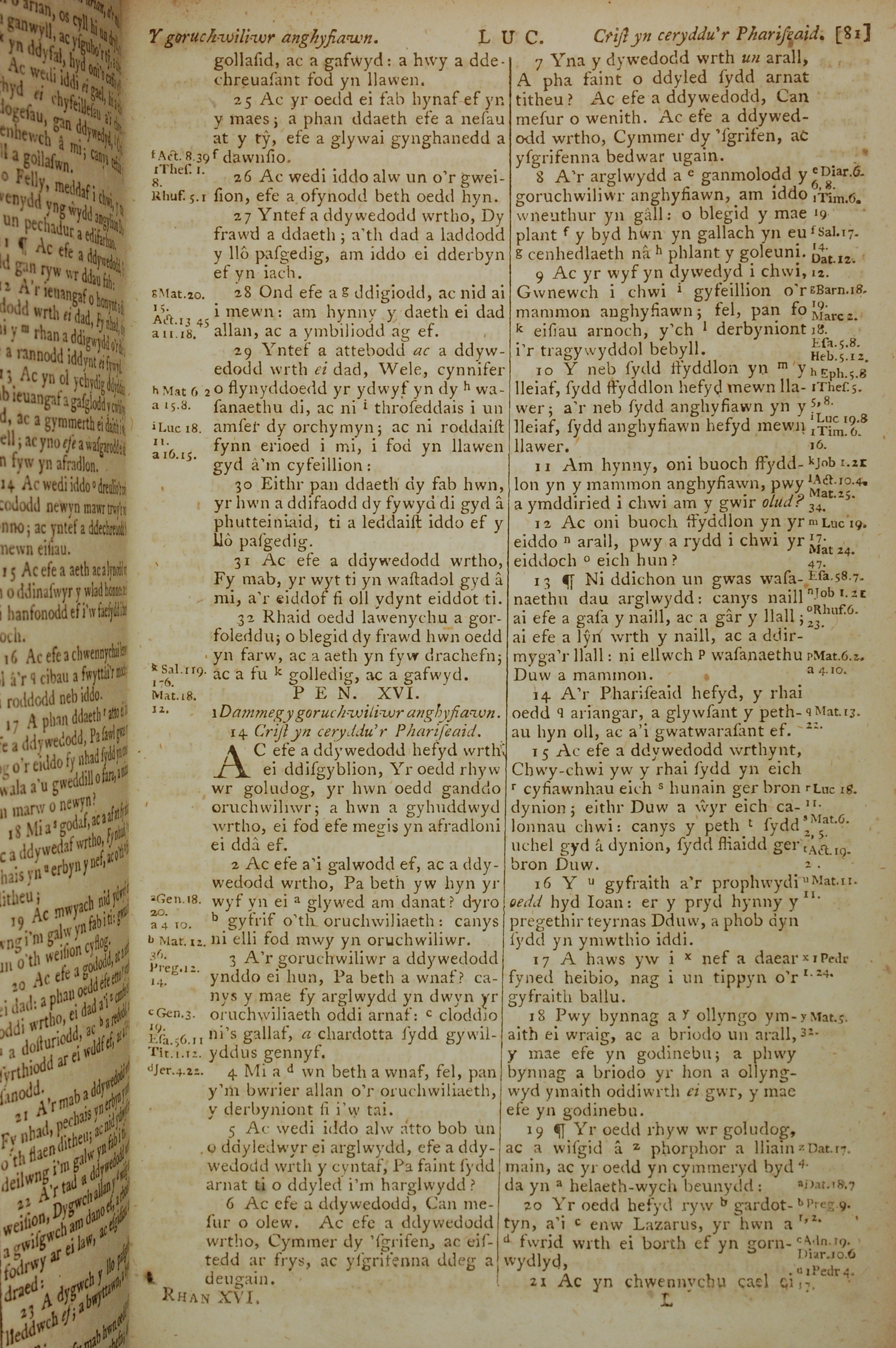 1796年威爾斯文新舊約全書 路加福音 15 章 25 節到 16 章 21 節