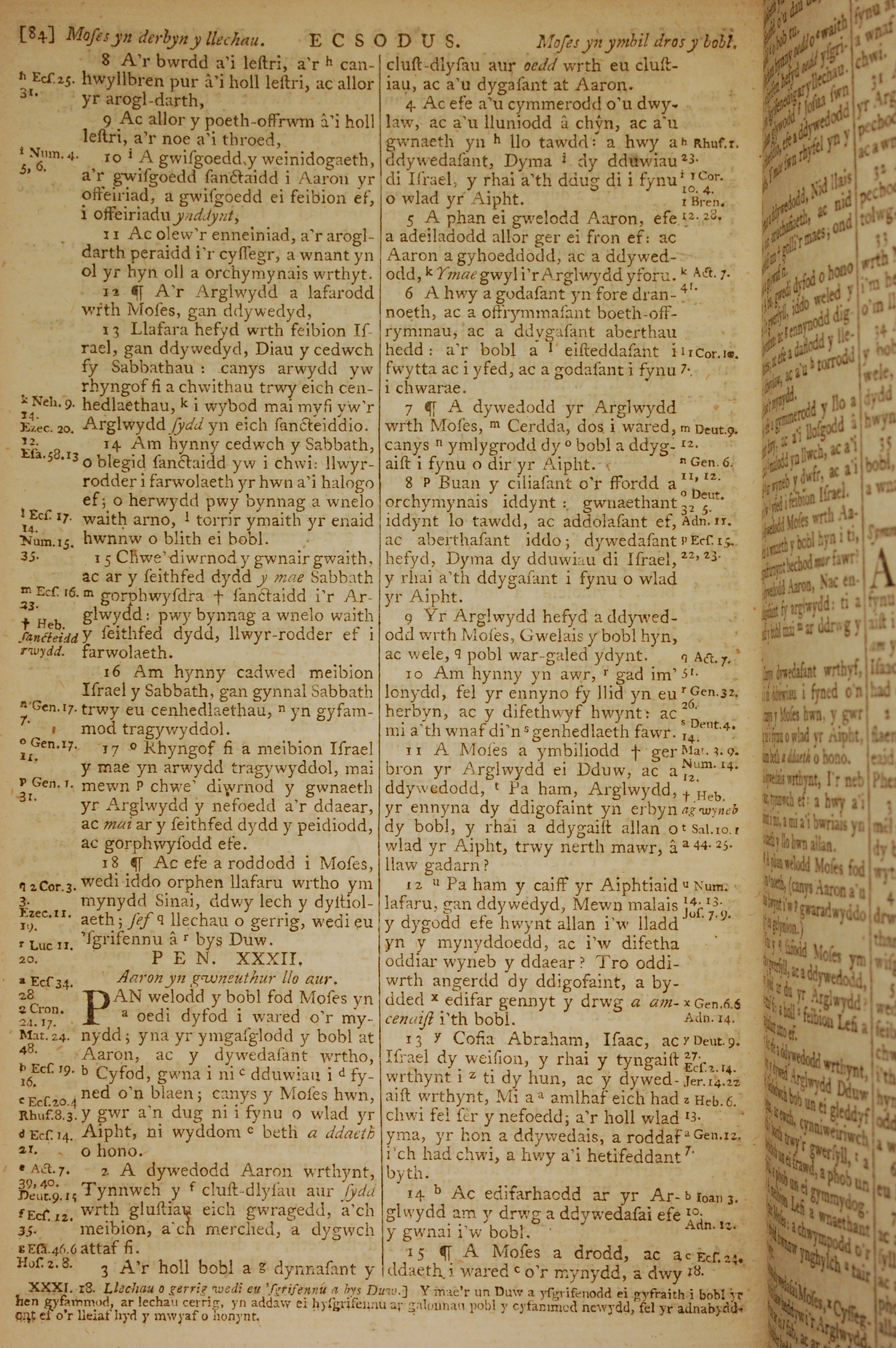 1796年威爾斯文新舊約全書 出埃及記 31 章 8 節到 32 章 15 節