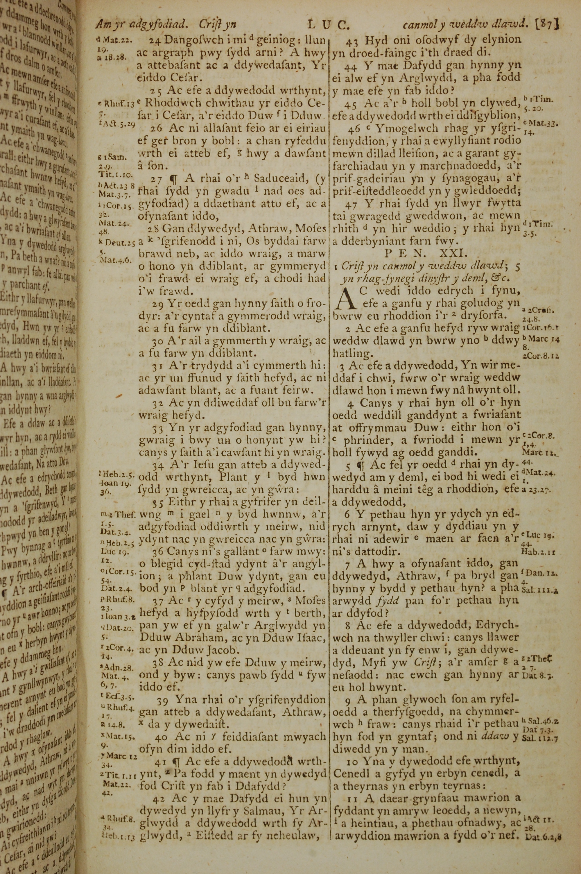 1796年威爾斯文新舊約全書 路加福音 20 章 24 節到 21 章 11 節