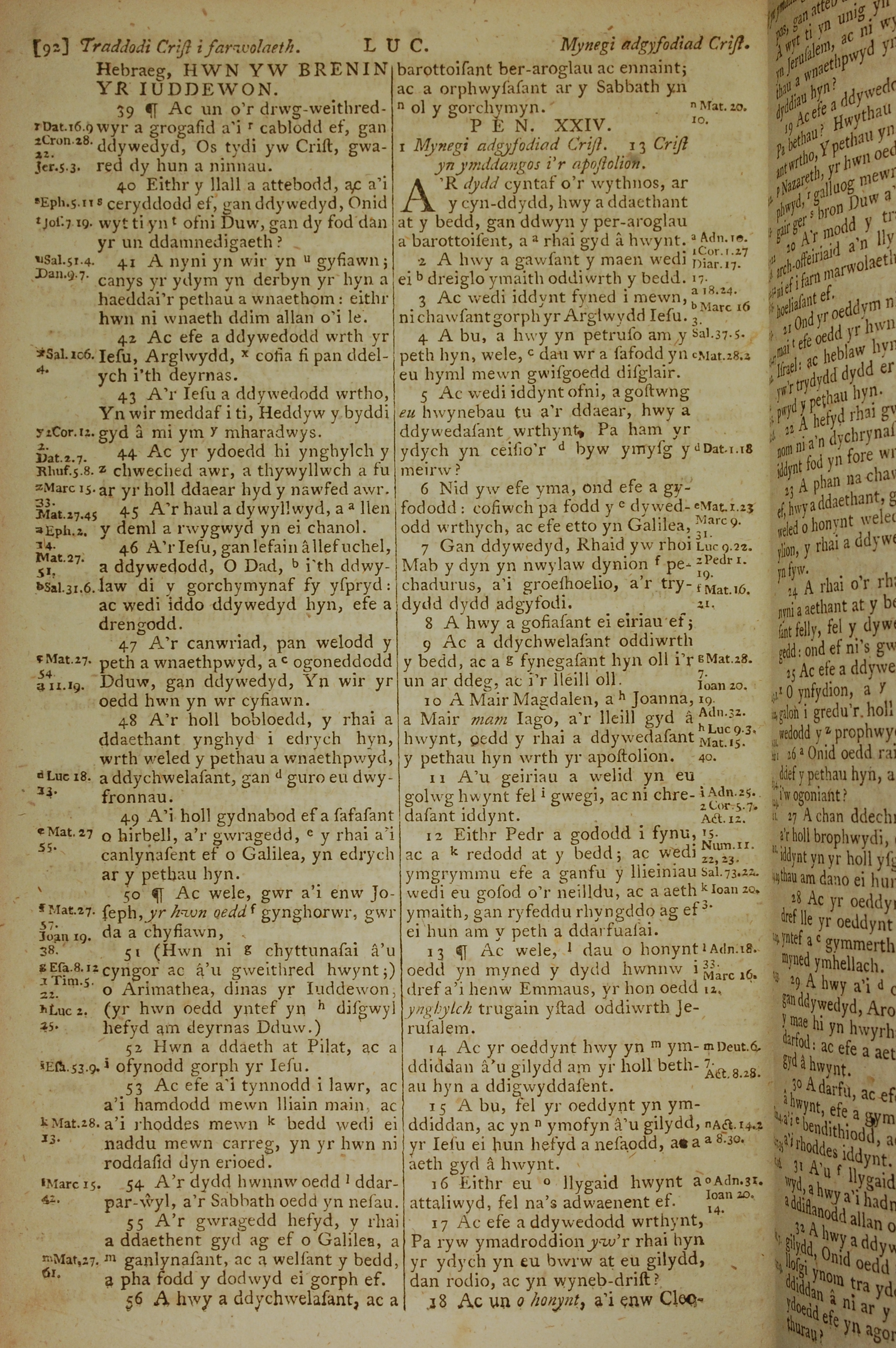 1796年威爾斯文新舊約全書 路加福音 23 章 39 節到 24 章 18 節