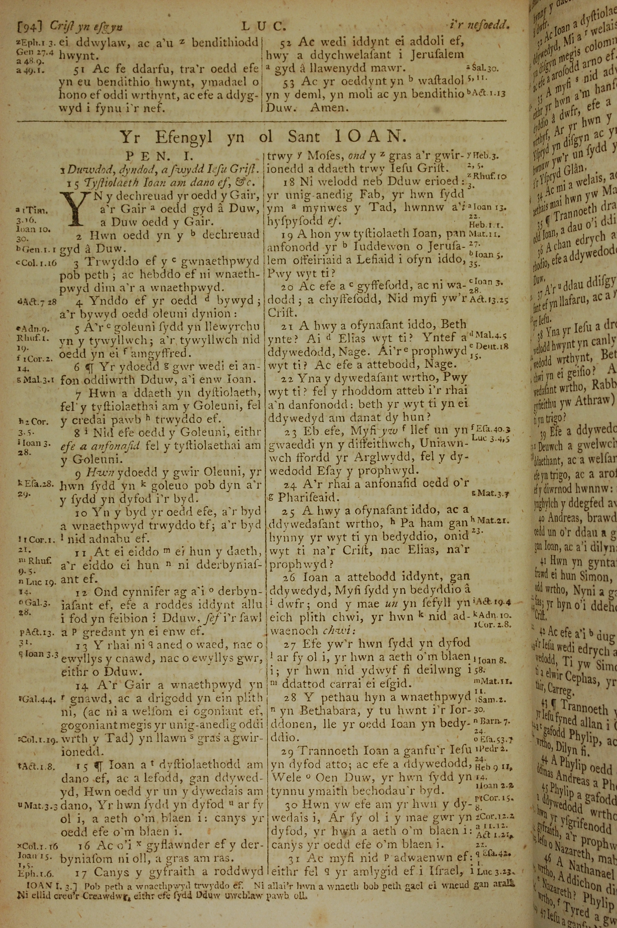 1796年威爾斯文新舊約全書 約翰福音 1 章 1 節到 1 章 31 節