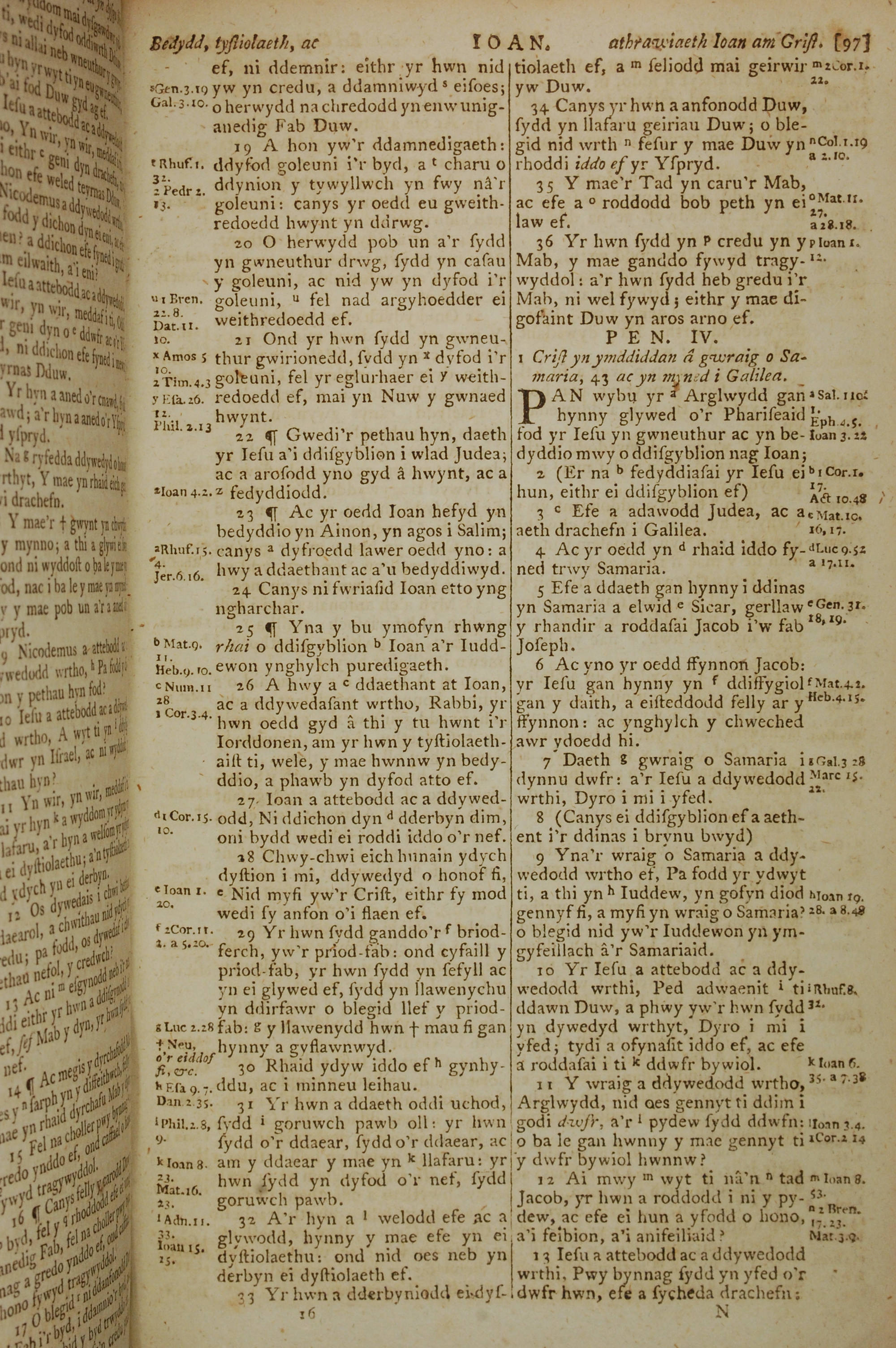 1796年威爾斯文新舊約全書 約翰福音 3 章 19 節到 4 章 13 節