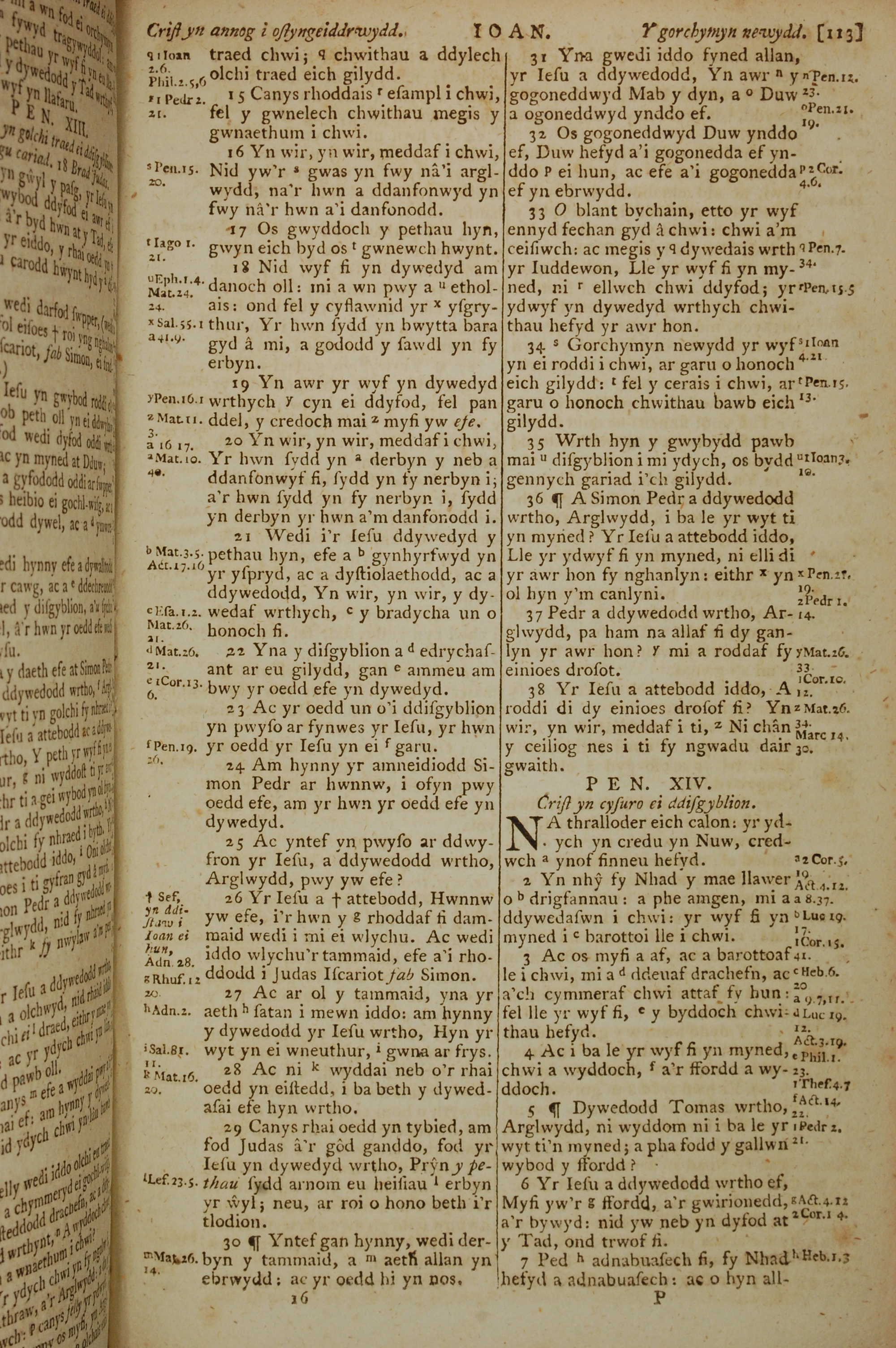 1796年威爾斯文新舊約全書 約翰福音 13 章 15 節到 14 章 7 節
