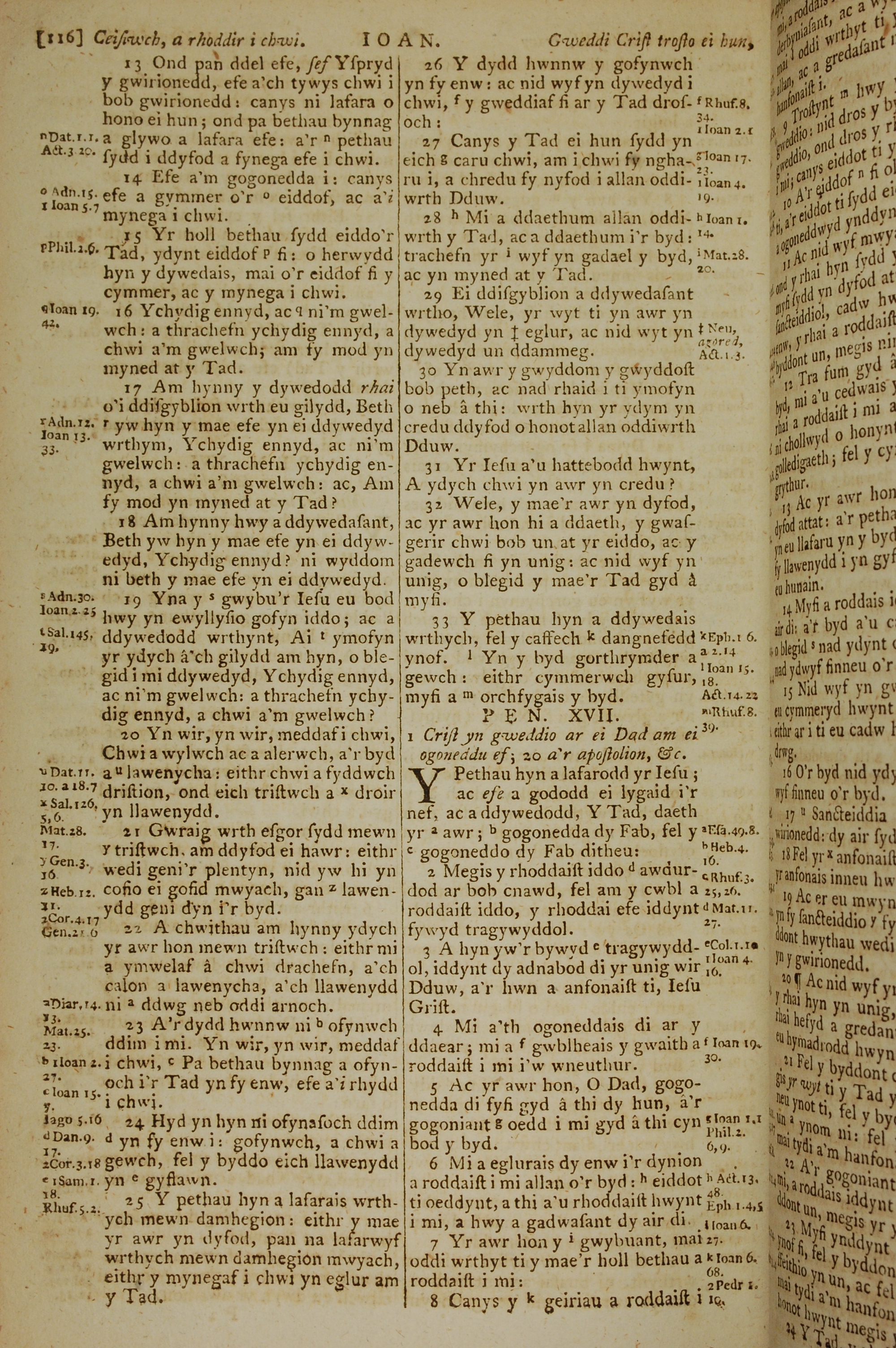 1796年威爾斯文新舊約全書 約翰福音 16 章 13 節到 17 章 8 節
