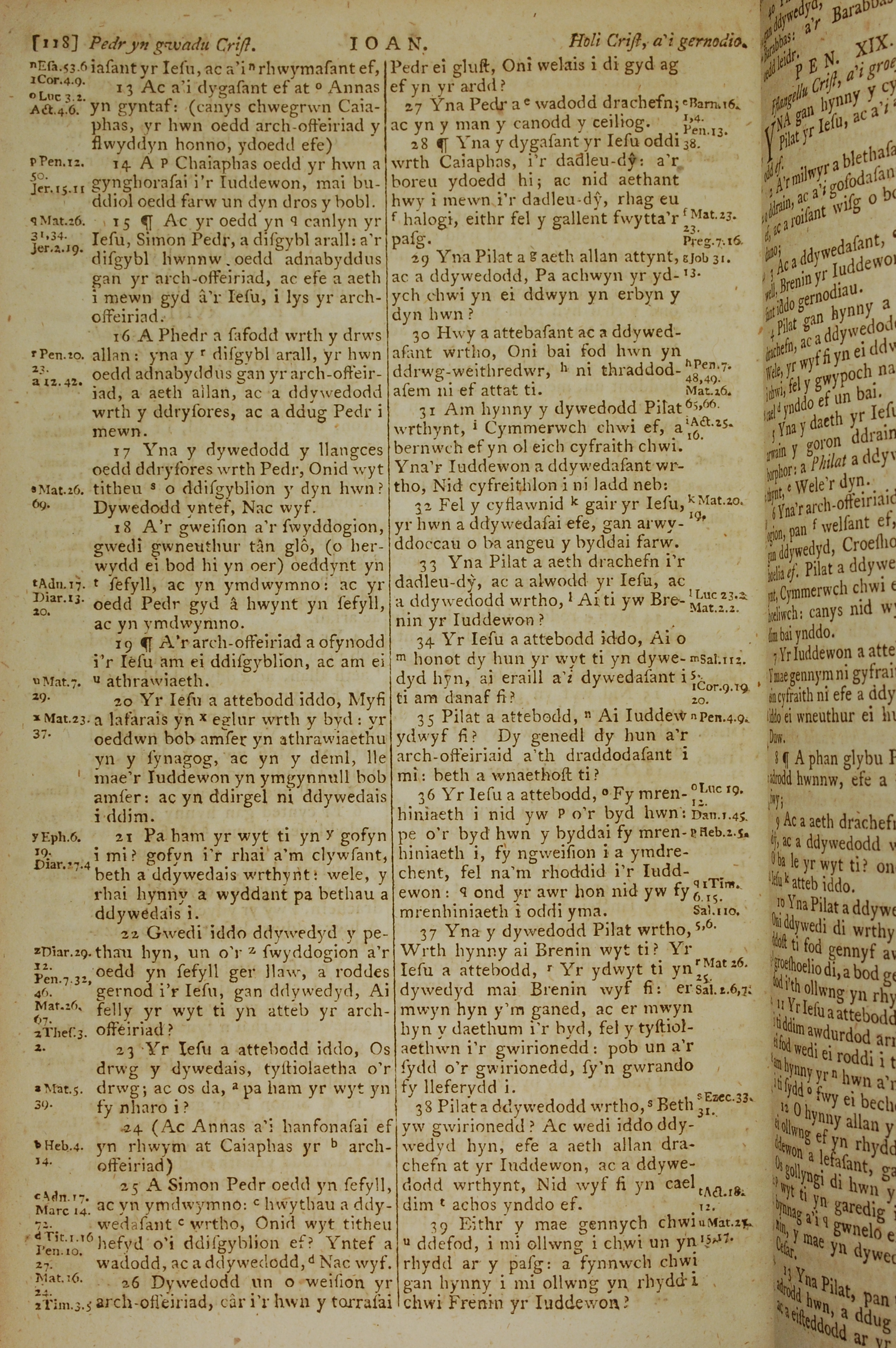 1796年威爾斯文新舊約全書 約翰福音 18 章 13 節到 18 章 39 節