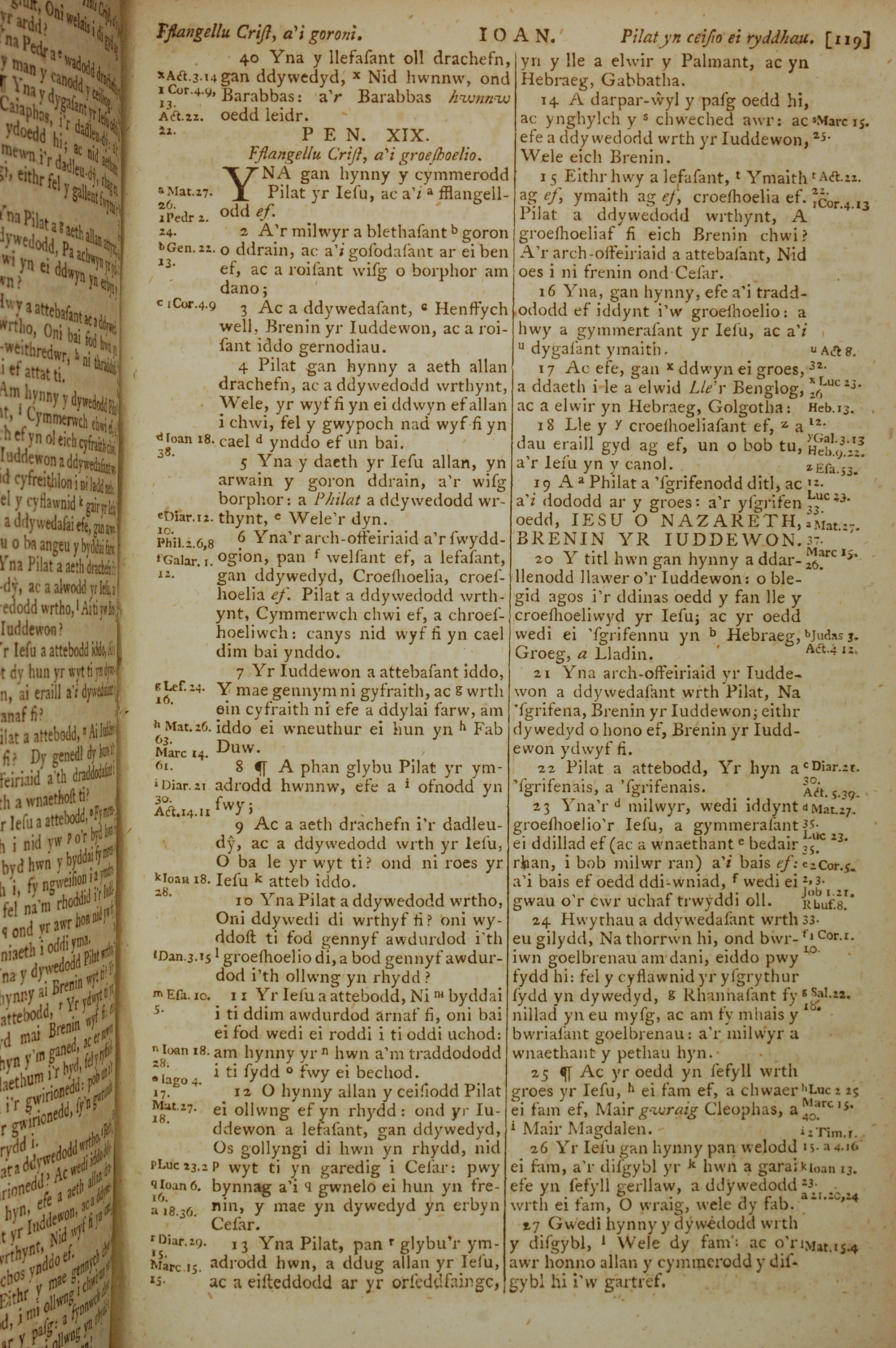 1796年威爾斯文新舊約全書 約翰福音 18 章 40 節到 19 章 27 節