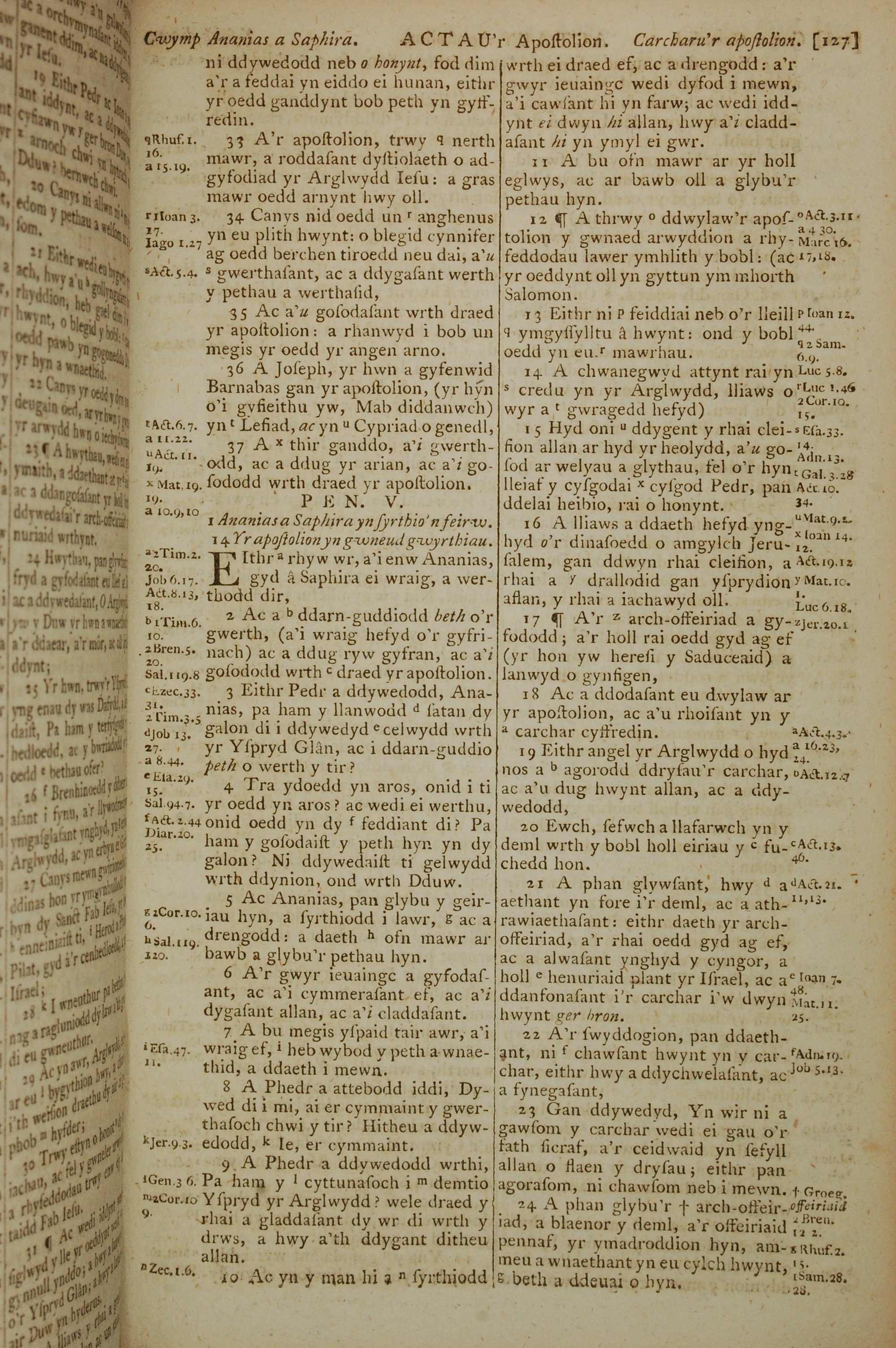 1796年威爾斯文新舊約全書 使徒行傳 4 章 33 節到 5 章 24 節