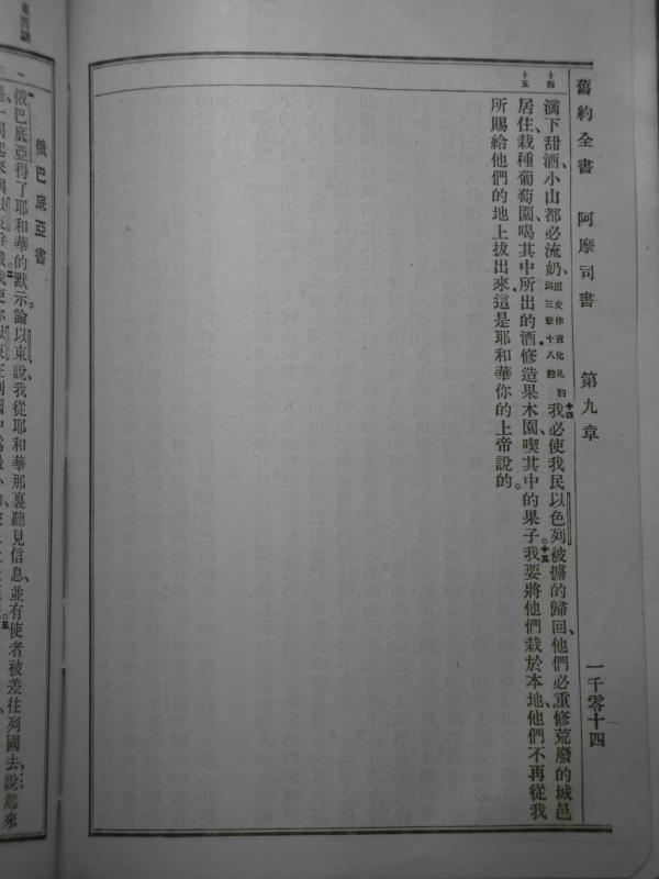 1919年官話和合本 阿摩司書 9 章 14 節到 9 章 15 節